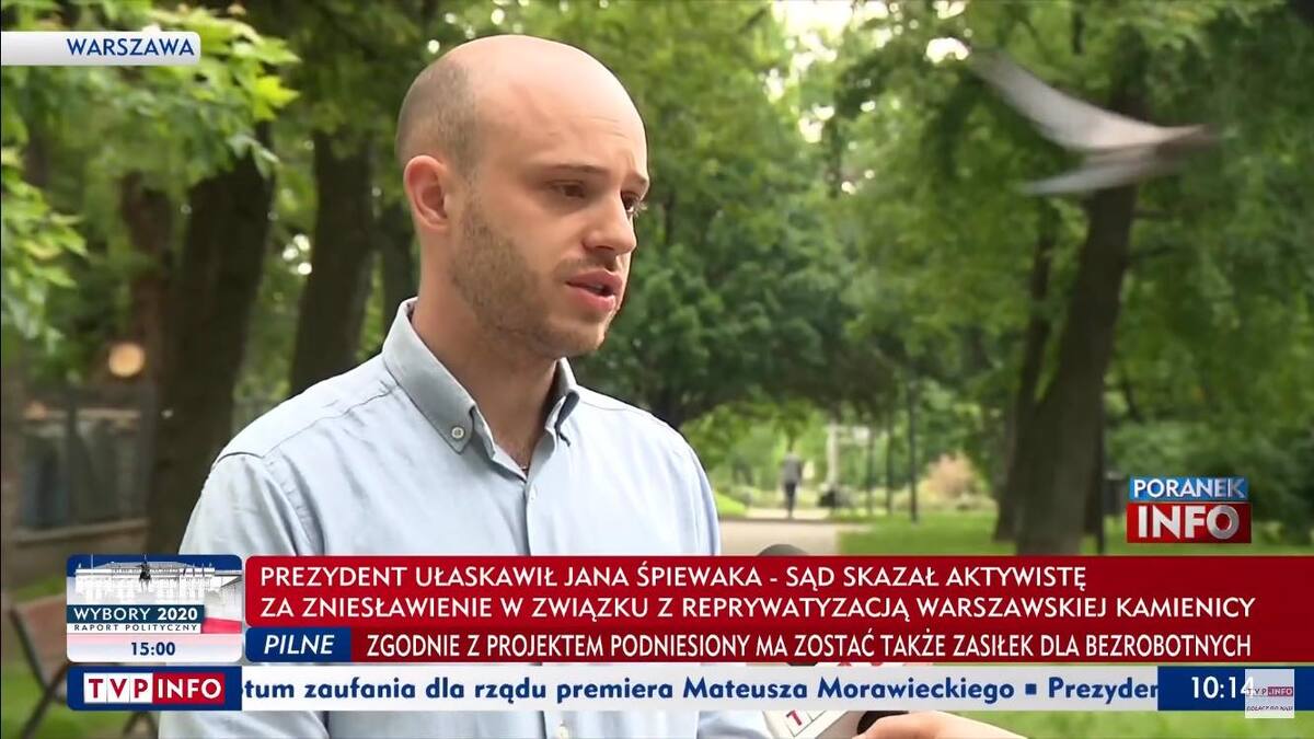 "Prezydent podpisał ustawę, która kończy dziką reprywatyzację w Warszawie. 8 lat temu zaczęliśmy o tym mówić głośno. Mieli nas za wariatów. Dzisiaj mamy ustawę" - napisał Jan Śpiewak.