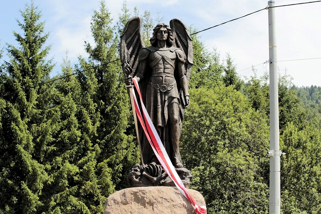 W trakcie ceremonii dokonano aktu zawierzenia Bieszczadów temu archanielskiemu patronowi. Autorem rzeźby jest Jacek Osadczuk, a jej powstanie możliwe było dzięki zaangażowaniu darczyńców. Budowa pomnika została zainicjowana i przeprowadzona przez stowarzyszenie "Ośrodek Myśli Prymasa Stefana Kardynała Wyszyńskiego" z Komańczy. Sam pomnik, mimo realistycznych rysów, wpisuje się w tradycję przedstawień archanioła jako idealnego wojownika - duchowego herosa, który bezkompromisowo przeciwstawia się złu. Smukła, dynamiczna sylwetka przyciąga uwagę geometrycznym rytmem, surową fakturą i pełnym determinacji spojrzeniem. U stóp archanioła spoczywa antropomorficzne ciało diabła - dalekie od bajkowych smoków czy wężowych postaci, do jakich przywykliśmy w ikonografii. Tu zło zyskuje formę bardziej niepokojącą - przypominającą człowieka. Pomnik ma wymiar nie tylko estetyczny, ale też przede wszystkim duchowe - jego przesłanie dotyka kwestii fundamentalnych. Adam Pęzioł, prezes stowarzyszenia odpowiedzialnego za realizację projektu podkreśla, że to nie tylko rzeźba, ale znak sprzeciwu wobec normalizacji zła i obecności symboli demonicznych w przestrzeni publicznej. Jak podkreśla, w dobie duchowego zamętu i relatywizacji moralnej potrzeba wyraźnych znaków, które przypomną o rzeczywistości duchowej walki, toczącej się nie w sferze metafory, ale w codzienności.