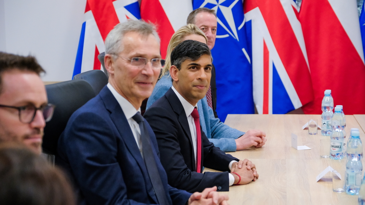 Szef NATO Jens Stoltenberg oraz premier Wielkiej Brytanii Rishi Sunak spotkali się we wtorek w 1 Warszawskiej Brygadzie Pancernej im. gen. Tadeusza Kościuszki w Warszawie.