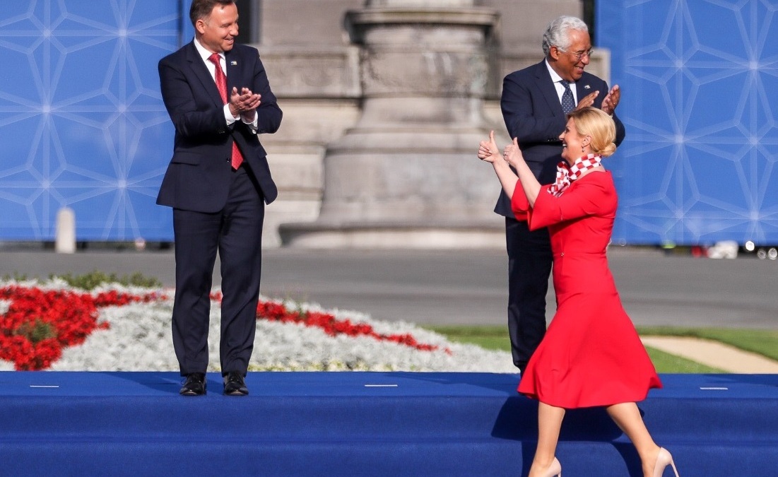 Szok! Prezydent Chorwacji na szczycie NATO pokazała uniesione kciuki! Czy spotka się z falą hejtu?