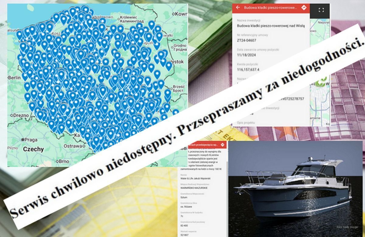 Strona, na której wcześniej udostępniono mapę z lokalizacjami projektów finansowanych z unijnych funduszy, przestała działać w piątek ranowy, jednak jej poszczególne punkty są szeroko udostępniane w mediach społecznościowych. Po próbie wejścia na stronę wyświetla się komunikat z błędem, co wychwycili internauci: "Serwis chwilowo niedostępny. Przsepraszamy za niedogodności".