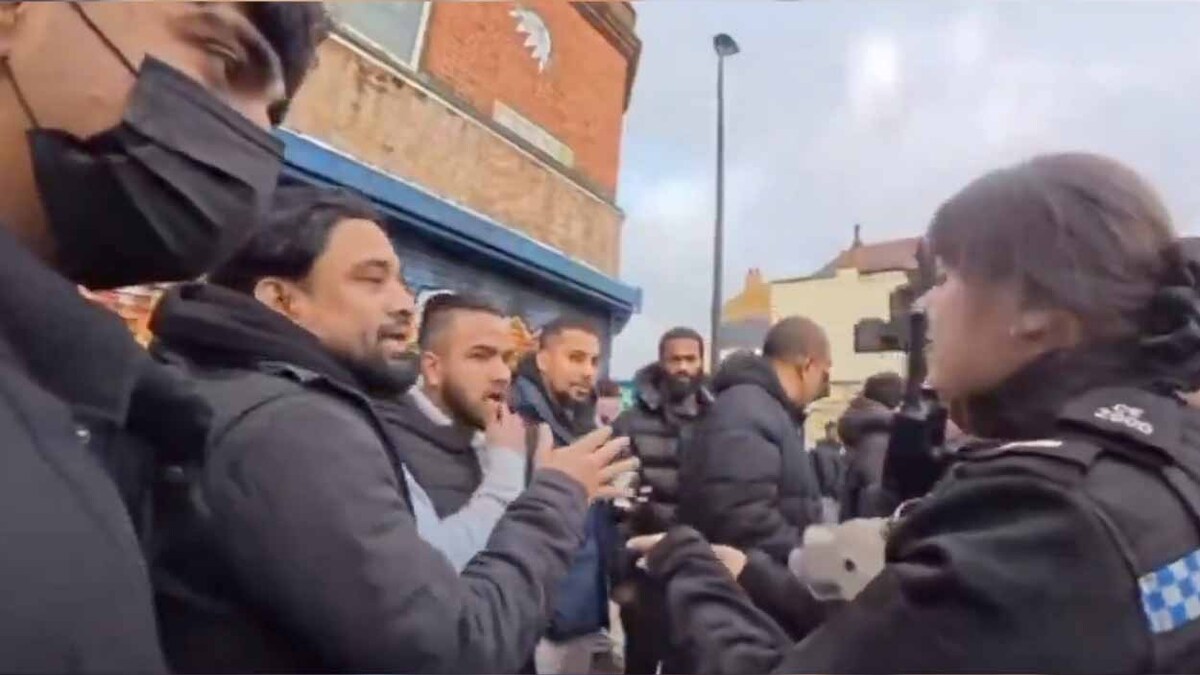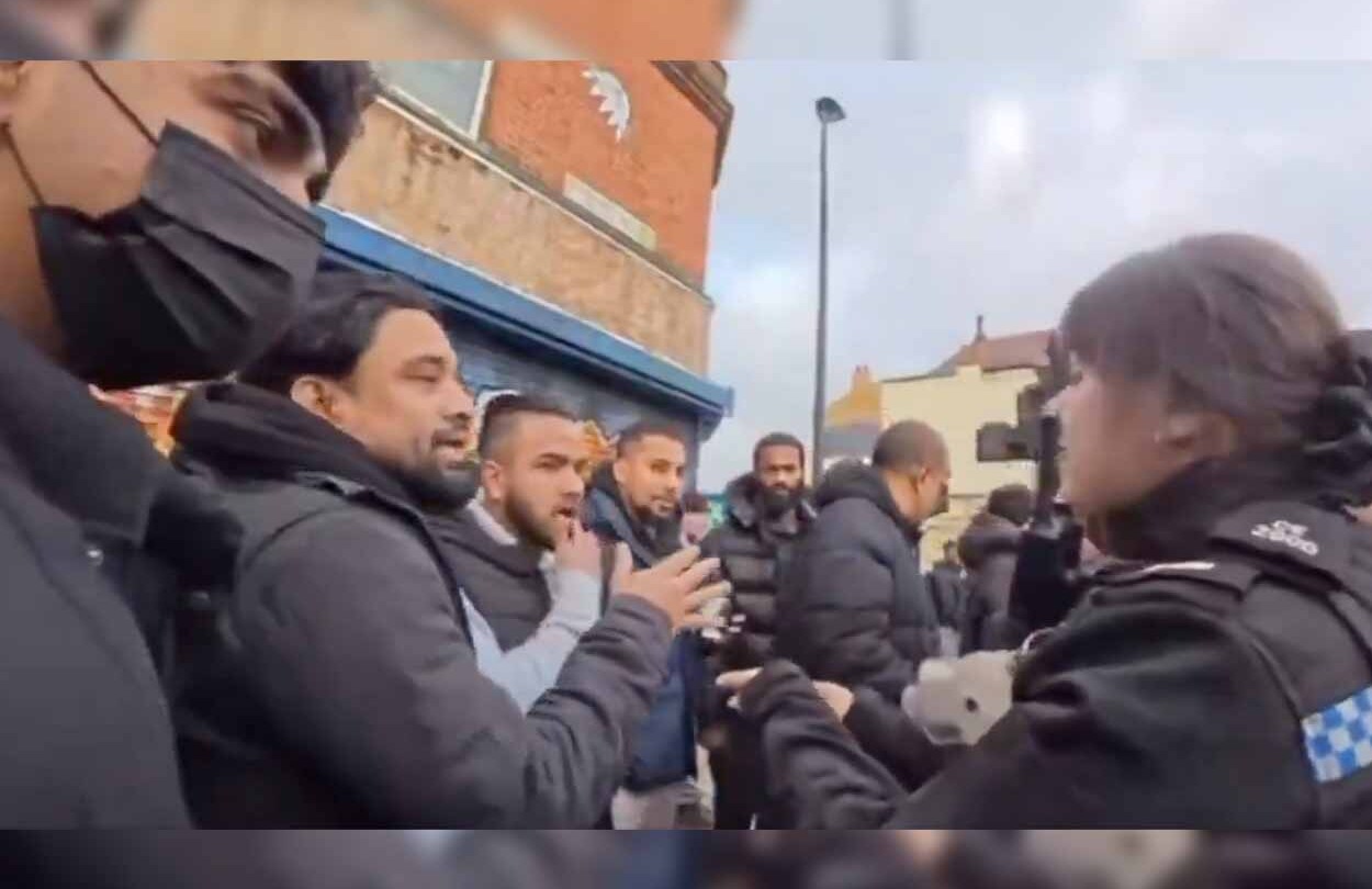Listen to the sheer, breathtaking entitlement. A mob of blokes surrounding a lone female police officer on a British street, demanding she act as their personal blasphemy enforcer because someone dared to offend their religion.
