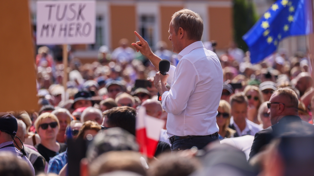 Do uczestników marszu na placu Zamkowym przemawiał przewodniczący PO Donald Tusk.