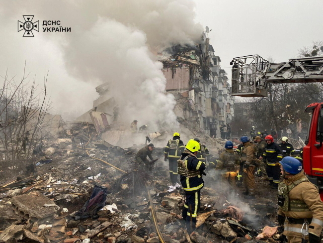 Rosjanie przeprowadzili w sobotę rano zmasowany atak na Ukrainę z zastosowaniem rakiet, odpalonych z bombowców Tu-22 i Tu-95 oraz dronów uderzeniowych. W Połtawie pocisk uderzył w pięciokondygnacyjny blok, rujnując całą klatkę schodową.