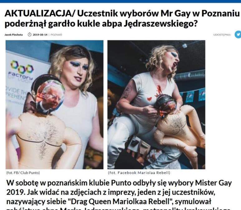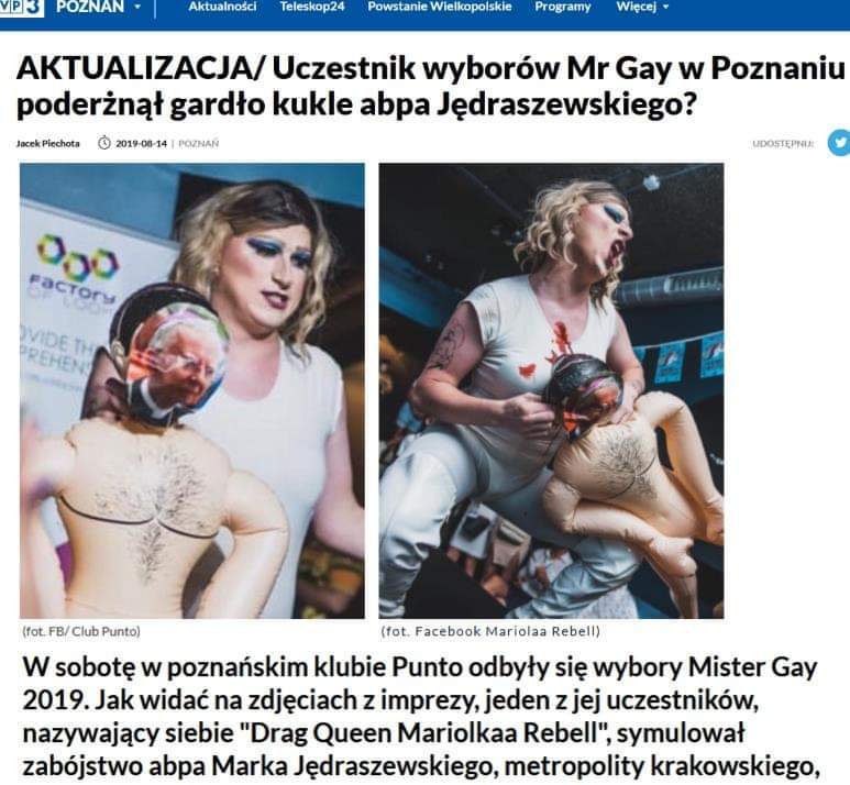 - W tył głowy lali wbiłem nożyczki, żeby pokazać, jak uchodzi z niej powietrze. Nie chciałem nawoływać do żadnej nienawiści. To był performance, pokazanie problemu społeczności LGBT, podkreślenie, że ta społeczność jest szykanowana przez katolików i Kościół. Słowa, które wypowiedział Marek Jędraszewski krwawią moje serce i ranią moje uczucia przez to, że kocham inaczej. Społeczność LGBT nie jest żadną zarazą