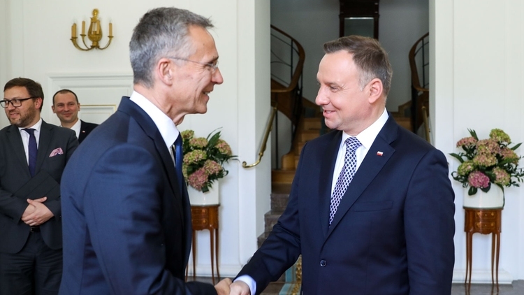 W trakcie konferencji prasowej po spotkaniu z Jensem Stoltenbergiem w Belwederze Andrzej Duda pokreślił, że tematem ich rozmowy były sprawy najistotniejsze z punktu widzenia "działań Sojuszu przewidywanych na najbliższe lata", a także nadchodzących spotkań: tzw. bukaresztańskiej dziewiątki oraz szczytu NATO w Brukseli.
