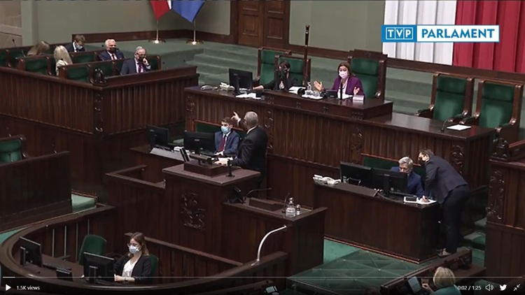 Musimy zaprotestować wszyscy jak tu siedzimy. Nie zgadzam się w wielu sprawach z panem ministrem, uważam że mówił z tego miejsca głupoty, ale będę pana bronił przed takimi tekstami. Panie pośle Braun, nie wolno nigdy wobec nikogo tak mówić. Nie wolno! To jest groźba karalna. To jest rzecz okropna. Pan często mówi "szczęść Boże" z tej mównicy, jak pan może mówić do kogoś takie słowa? Jak pan może? Jak to jest po chrześcijańsku? Naprawdę... nie wolno. Proszę o 5 minut przerwy by ostudzić emocje, bo to jest niedopuszczalne to co się wydarzyło