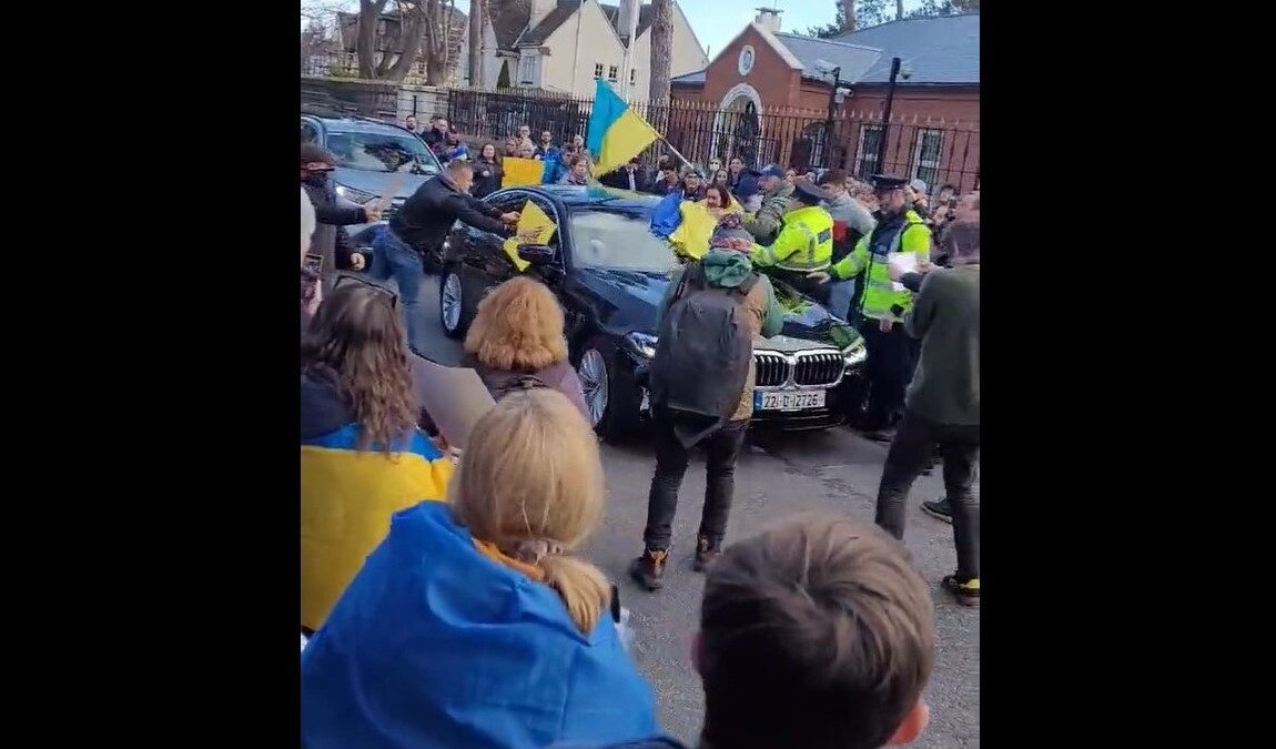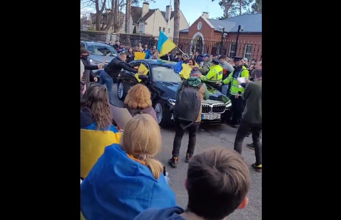 Pod rosyjską ambasadą w Dublinie odbyły się protesty przeciwko inwazji Rosji na Ukrainę. Jak wynika z materiałów opublikowanych w mediach społecznościowych miały one dość intensywny przebieg - zwłaszcza w momencie, gdy ambasador Rosji odjeżdżał swoim samochodem.