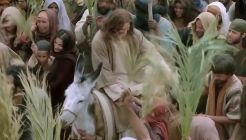 I przyprowadzili je do Jezusa, a zarzuciwszy na nie swe płaszcze, wsadzili na nie Jezusa. Gdy jechał, słali swe płaszcze na drodze. Zbliżał się już do zboczy Góry Oliwnej, kiedy całe mnóstwo uczniów zaczęło wielbić radośnie Boga za wszystkie cuda, które widzieli. I mówili głosem donośnym: