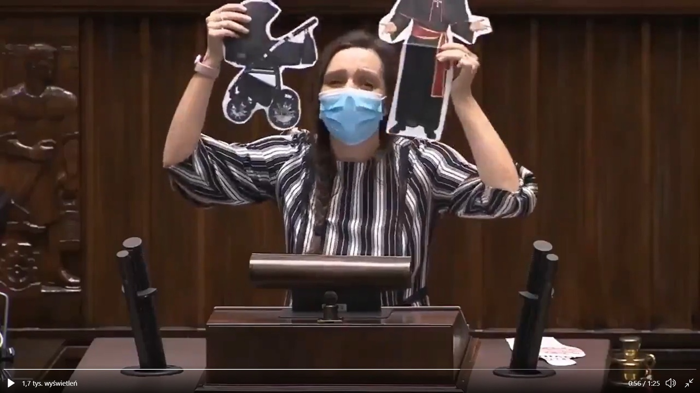 - kpiła posłanka z mównicy Sejmowej, wymachując obrazkami z duchownymi i wózkami dla dzieci.