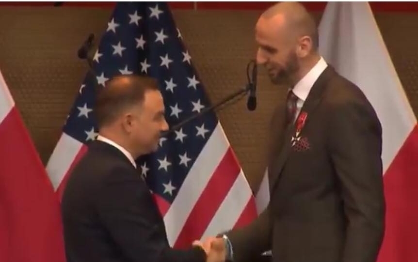 Prezydent Andrzej Duda odznaczył w Chicago Krzyżem Oficerskim Orderu Odrodzenia Polski znanego polskiego koszykarza, Marcina Gortata, który po karierze w amerykańskiej lidze koszykówki NBA, zajmuje się m.in. pomocą i promowaniem Polski za granicą.