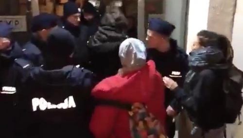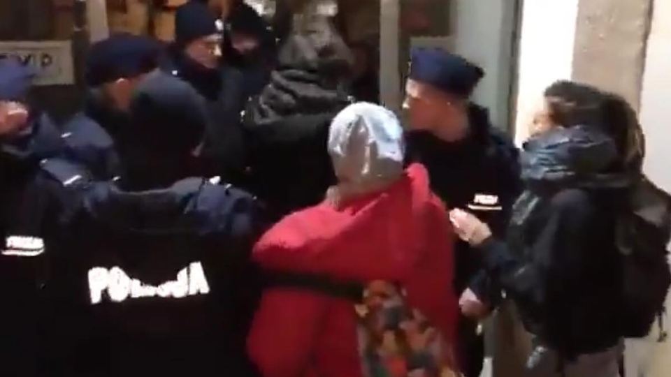 Poniżej słuchać monolog znanej z innych tego typu akcji przedstawicielki protestujących, która transmituje swoją akcję w mediach społecznościowych i jednocześnie obraża policjantów.