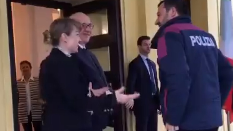 [video] Powitanie wicepremiera i MSW Włoch Matteo Salviniego. Salvini... w policyjnej kurtce