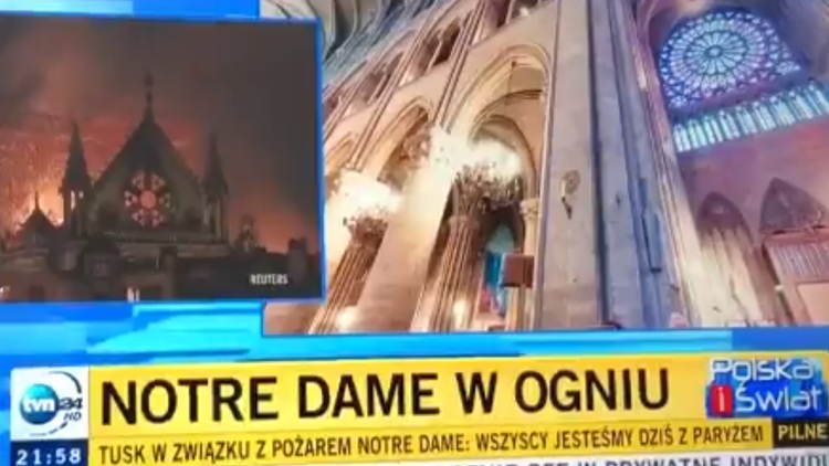 Spłonął symbol katolicyzmu i chrześcijaństwa, paryska katedra Notre Dame. Dla wielu jest to powód do żałoby, z całego świata napływają wyrazy współczucia, oferty pomocy. A tymczasem w TVN24...