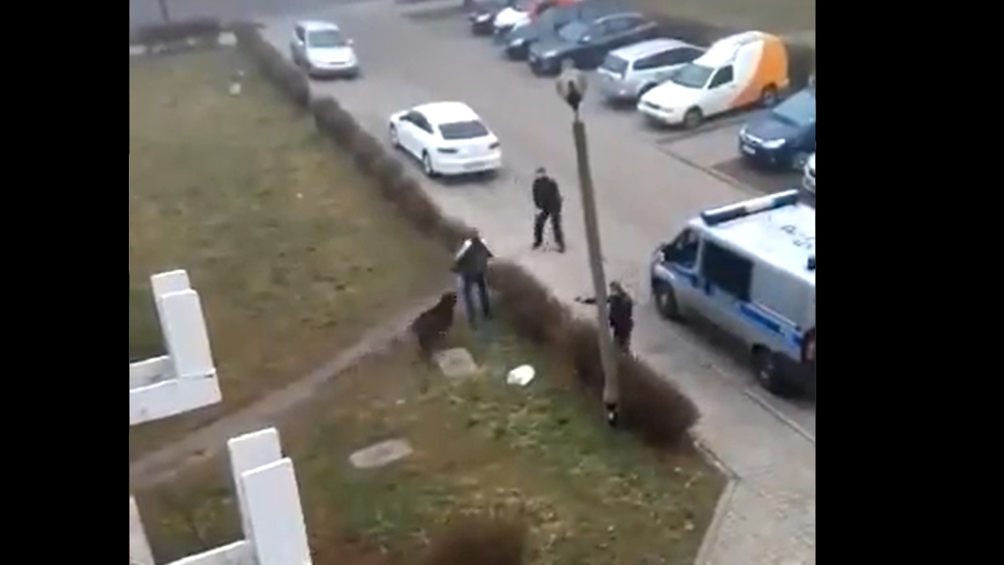 [video] Rozjuszony dzik w centrum Zabrza zaatakował przechodnia. Policjanci musieli użyć broni