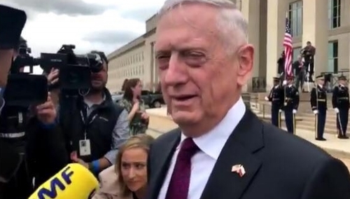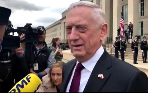 Podczas oczekiwania na przybycie ministra Mariusza Błaszczaka, James Mattis sekretarz obrony USA podszedł do dziennikarzy.