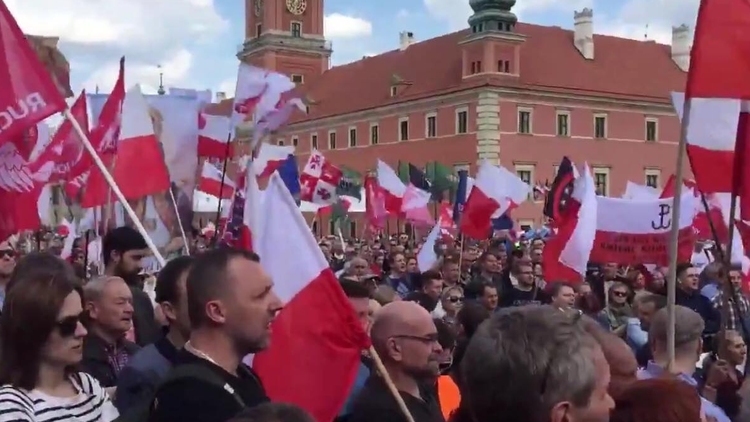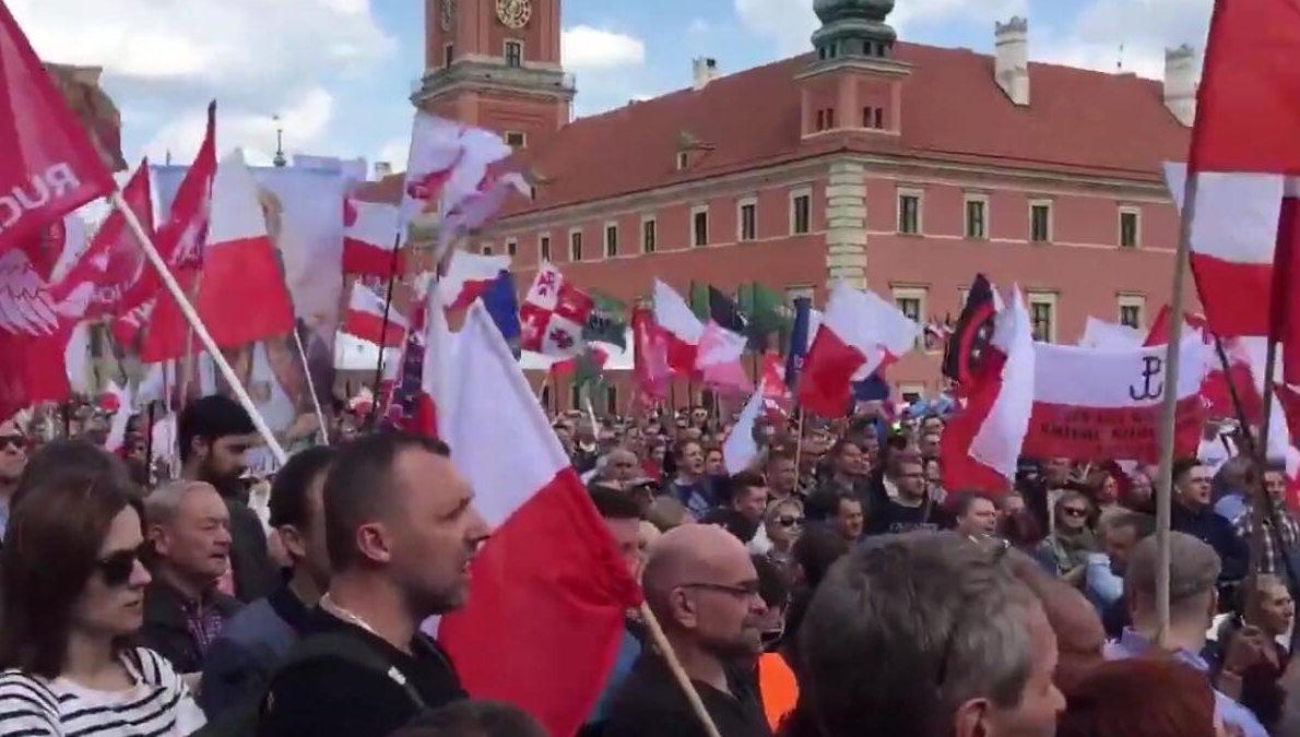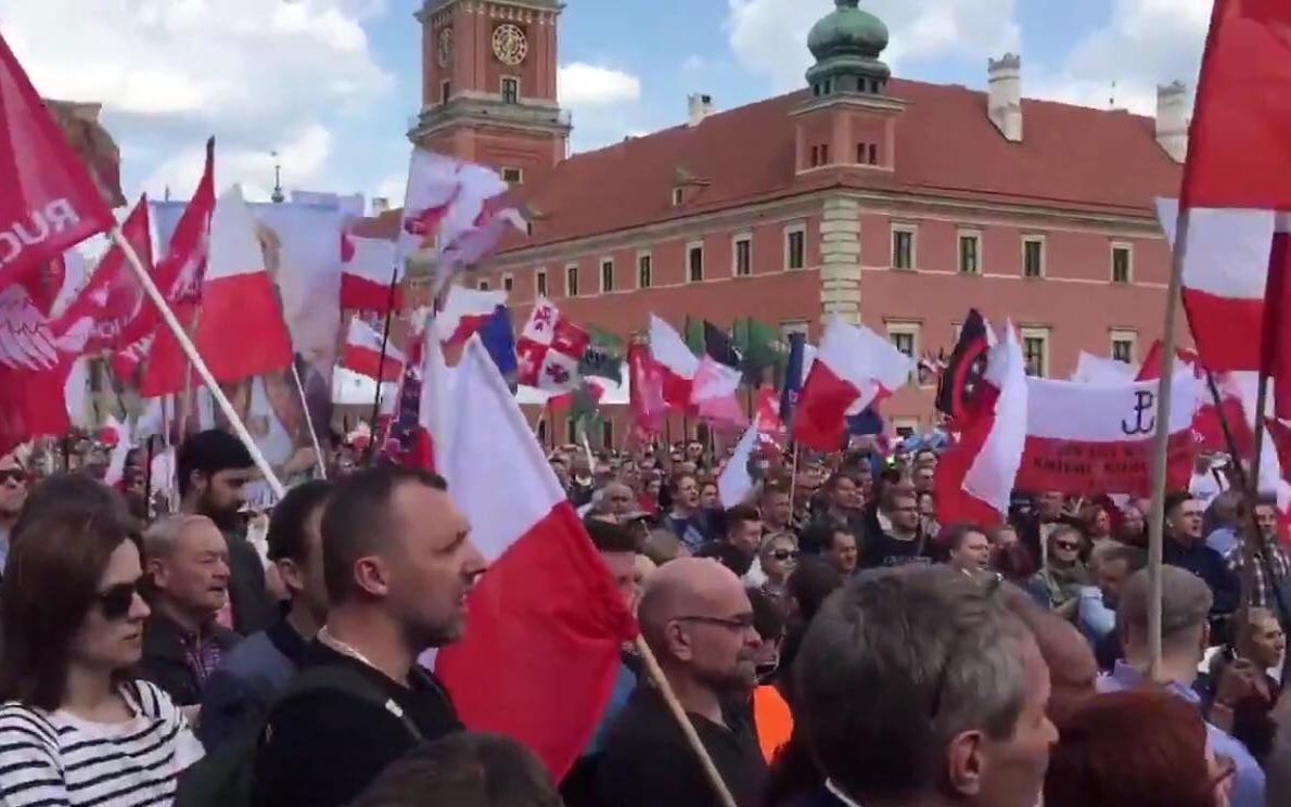 Jak widać na filmie poniżej, na Placu Zamkowym zebrała się bardzo duża grupa ludzi.