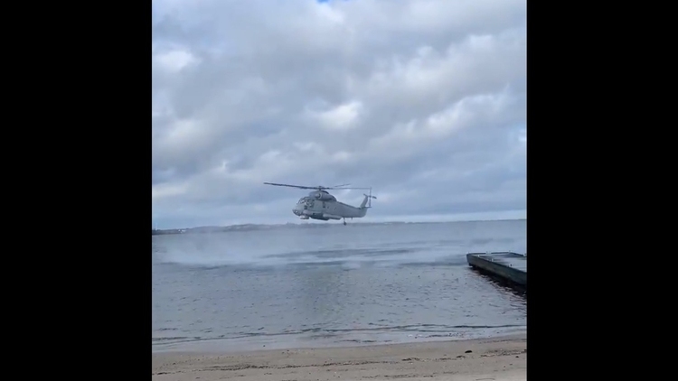 [video] Puck. Śmigłowiec MW zrzucił wiązankę kwiatów w setną rocznicę zaślubin Polski z Morzem