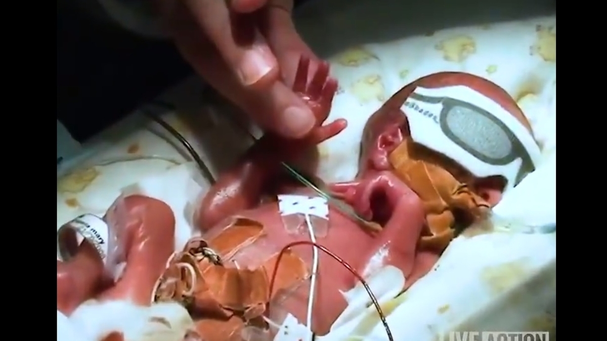 Zdrowe dziecko Toby urodzone w 24. tygodniu ciąży. Live Action [właściciel nagrania] nie mógł opublikować go na Facebooku
