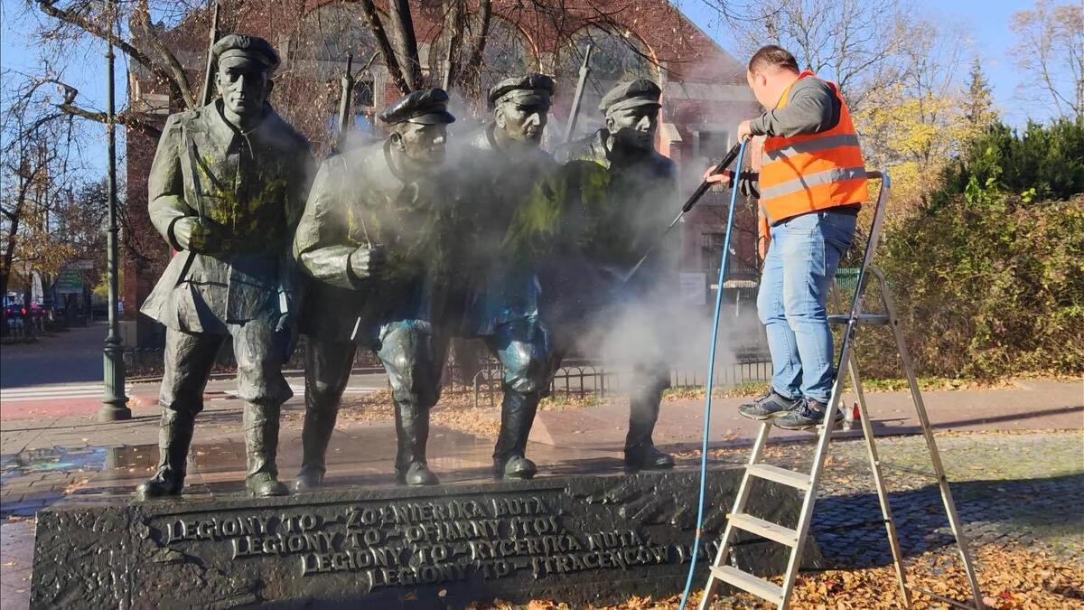 Na stronie miasta Krakowa poinformowano, że w sobotę przed południem miejskie służby zakończyły oczyszczanie pomnika Józefa Piłsudskiego i Legionistów.
