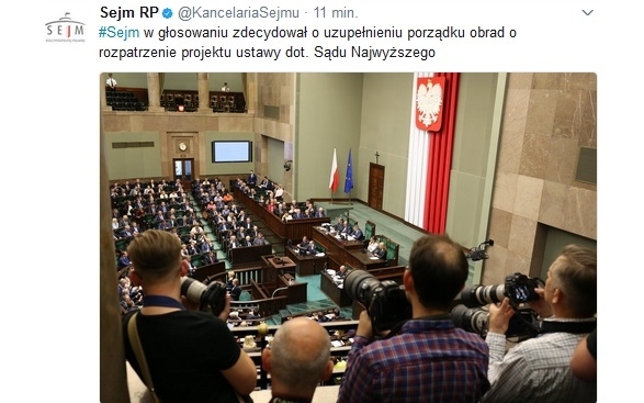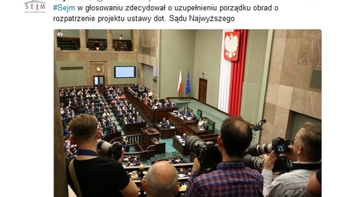 Sejmu RP uzupełnił porządek obrad o rozpatrzenie poselskiego projektu ustawy o Sądzie Najwyższym. pic.twitter.com/oAYvYWBi48