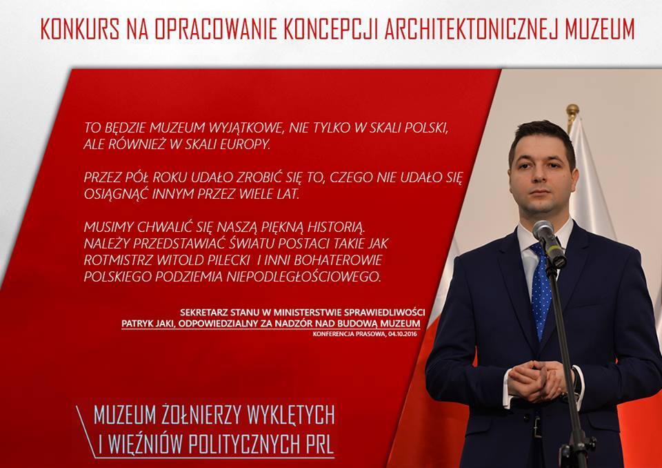 25 stycznia 2017 r. będzie ogłoszony wynik konkursu rozpisanego przed kilku dniami na opracowanie koncepcji architektonicznej Muzeum Żołnierzy Wyklętych i Więźniów Politycznych PRL – poinformowało Ministerstwo Sprawiedliwości.