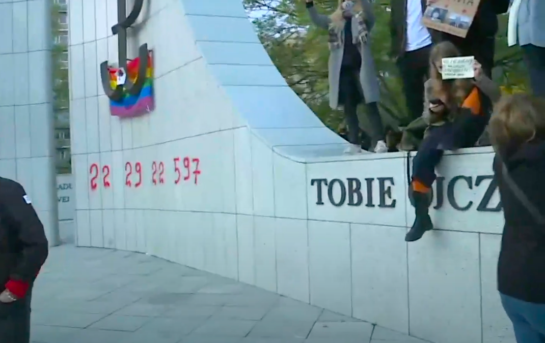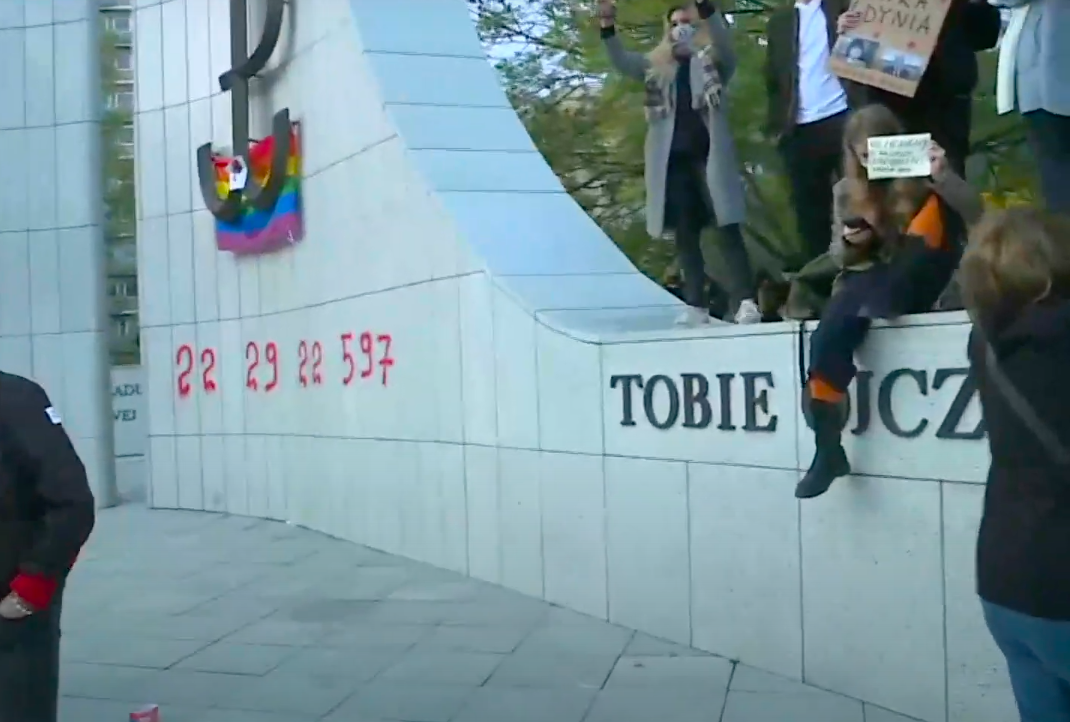 Demonstranci uczestniczący w Strajku Kobiet napisali na pomniku Armii Krajowej i Polskiego Państwa Podziemnego, stojącego na przeciw kompleksu budynków Sejmu RP numer telefonu organizacji "Aborcja bez Granic". Wywieszono także tęczową flagę.