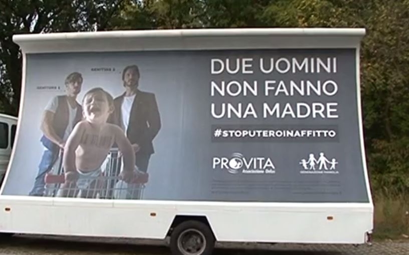 Dosłownie tydzień temu, na portalu tysol.pl informowaliśmy, że we Włoszech rozpoczęła się kampania "Dwóch mężczyzn nie czyni matki" organizacji pro-life, przeciwko wynajmowaniu surogatek przez pary homoseksualne. Teraz okazuje się, że kampania została zablokowana.