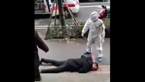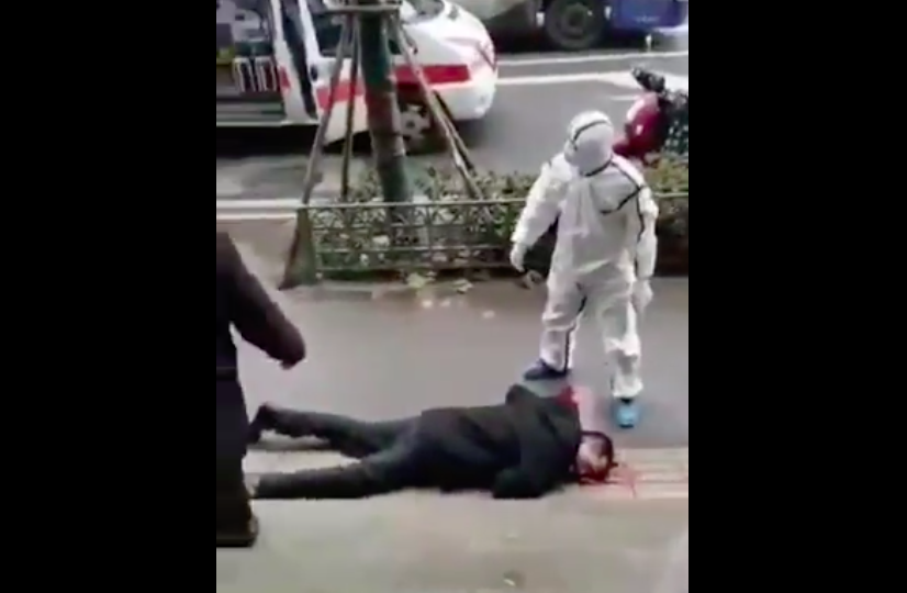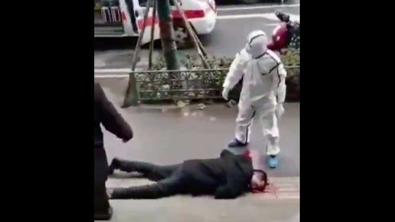 another case of collapsing on street in Wuhan.