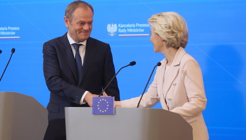 W piątek, po spotkaniu w Warszawie z premierem Donaldem Tuskiem, szefowa Komisji Europejskiej Ursula von der Leyen powiedziała, że jest pod wrażeniem polskich wysiłków na rzecz przywracania praworządności, które są - jak mówiła - zdecydowane i opierają się na uruchomionych już reformach. Szefowa KE poinformowała, że w przyszłym tygodniu zapadną dwie decyzje ws. funduszy europejskich dla Polski. Uwolnią one do 137 mld euro z funduszy spójności i Funduszu Odbudowy.