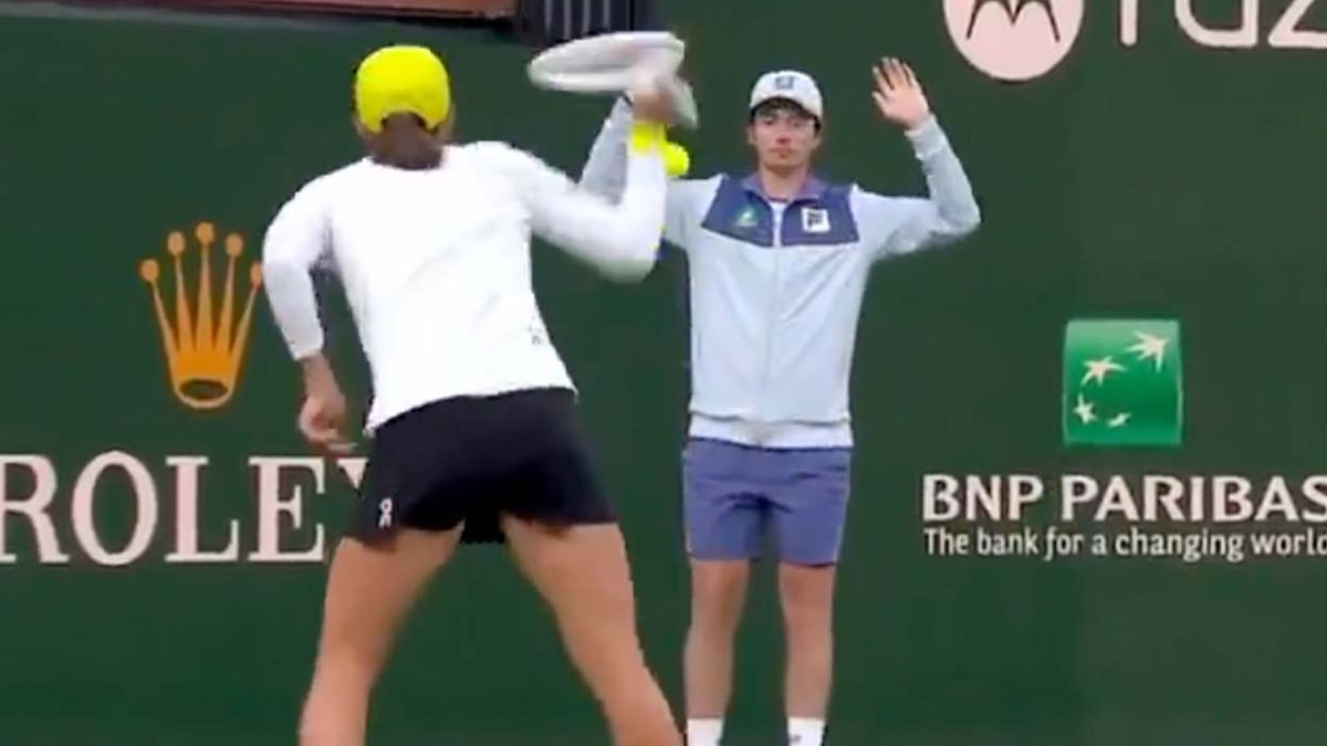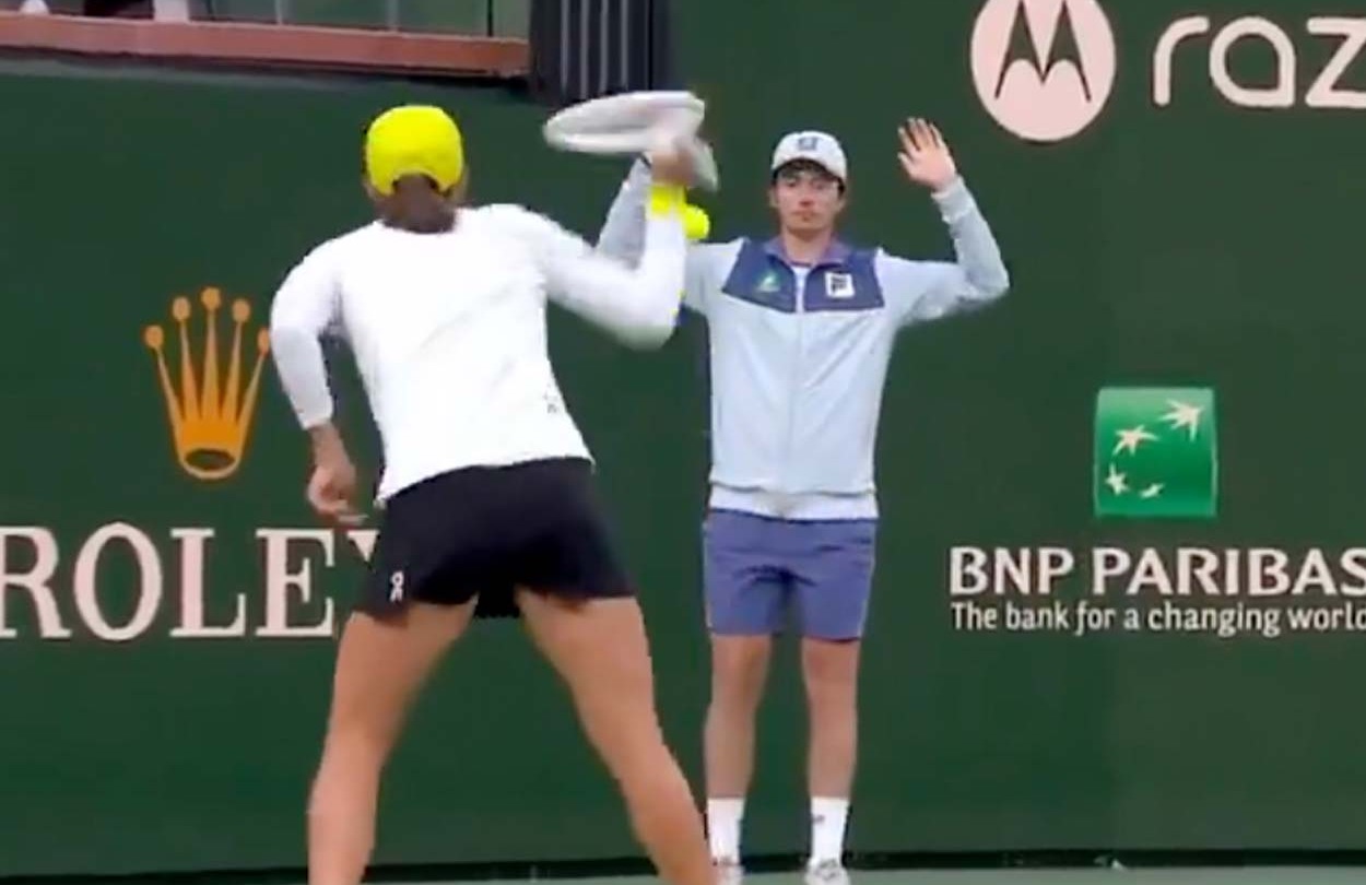 Iga Swiatek hitting ball at ball kid pic.twitter.com/DGdoIG6hc1