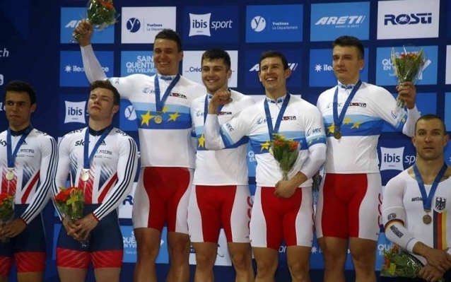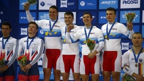 Polacy w każdej kolejnej rundzie uzyskiwali coraz lepsze rezultaty. Najpierw Biało-czerwoni w składzie Maciej Bielecki, Mateusz Lipa i Mateusz Rudyk wykręcili czwarty wynik eliminacji, następnie, kiedy w pierwszej rundzie Lipę zmienił Kamil Kuczyński osiągnęli drugi rezultat. W finałowym wyścigu nasi reprezentanci pewnie pokonali Brytyjczyków z czasem 43,211. To trzeci w ogóle i pierwszy złoty medal reprezentacji Polski na mistrzostwach Europy rozgrywanych na welodromie we francuskiej miejscowości Saint-Quentin-en-Yvelines.