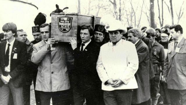 Waldemar Chrostowski (z lewej) niesie trumnę z ciałem ks. Jerzego Popiełuszki