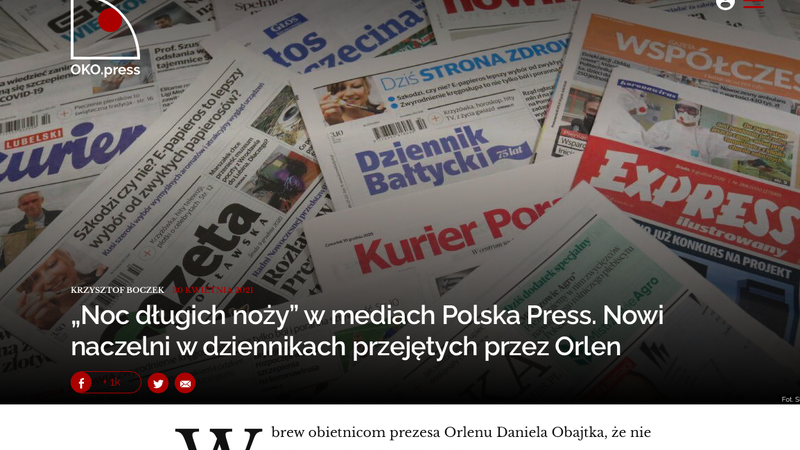 Zmiany redaktorów naczelnych w Polska Press OKO.press porównuje do „Nocy długich noży” z czasów Hitlera