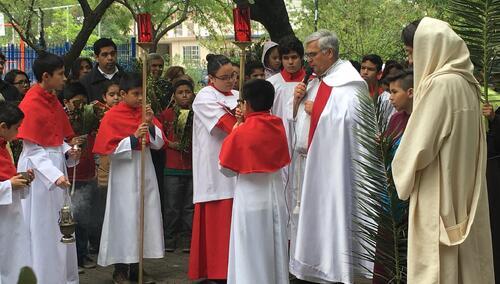 Podczas tego obrzędu śpiewa się antyfonę: "Bramy, podnieście swe szczyty, unieście się odwieczne podwoje, aby mógł wkroczyć Król chwały". Zaraz przy wejściu do kościoła czytana jest Ewangelia o tryumfalnym wjeździe Jezusa do Jerozolimy, a następnie kapłan święci palmy. Później zostają one spalone a popiołem posypuje się głowy wiernych we Środę Popielcową następnego roku.