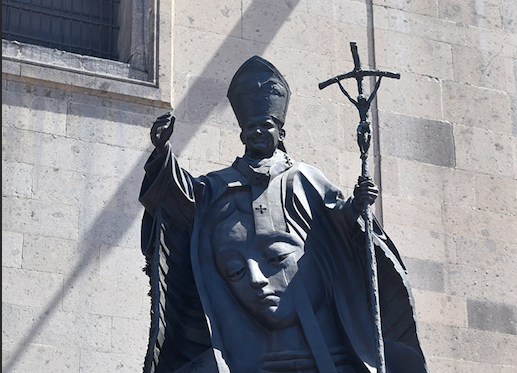 - Ta pamięć i miłość do Jana Pawła II żyje w tym kraju do dziś. Polacy odwiedzający Meksyk mogą się o tym przekonać. Nie brakuje w Meksyku murali i pomników poświęconych Janowi Pawłowi II. Jeden z niezwykle pięknych monumentów stoi na placu przy katedrze w mieście Meksyk. Pomnik jest podziękowaniem dla Ojca Świętego za klucz do Jego serca, a historia jego powstania jest wyjątkowa. W całym Meksyku przeprowadzono zbiórkę kluczy, które posłużyły do przetopienia i wykonania odlewu postaci papieża Polaka. Meksykanie ofiarowali na ten cel miliony kluczy, które można zresztą dostrzec na tylnej części pomnika. Z przodu, w rozpostartych ramionach Karola Wojtyły, umieszczono obraz Matki Bożej z Guadelupe. Pomnik odsłonięto 10 lutego 2007 roku - opowiada podróżnik i fotoreporter Bogdan Myśliwiec, który miał okazję widzieć wyjątkowy pomnik.