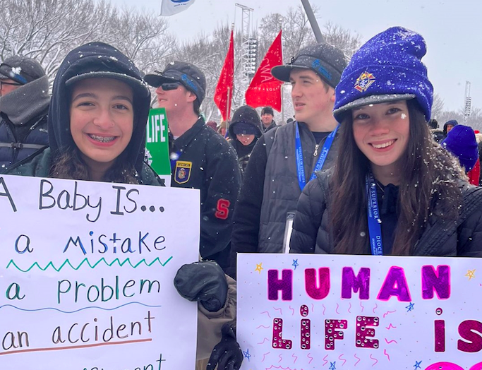 Uczestnicy w zimowej aurze nieśli transparenty z napisami "kocham życie, wybieram życie", "módlmy się, o zakończenie procesu aborcji", wielki drewniany krzyż i amerykańskie flagi.