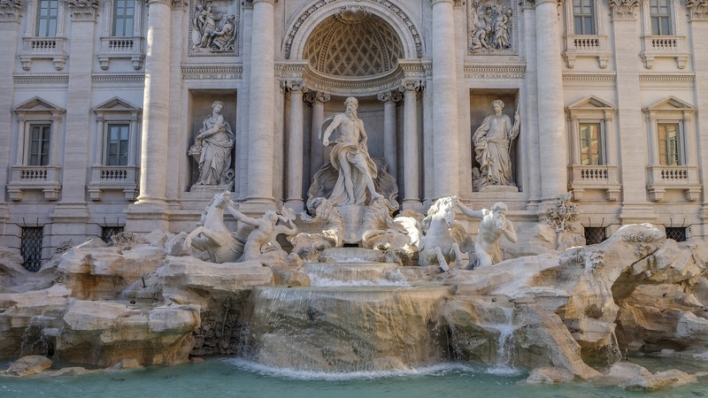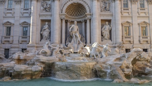 Fontanna di Trevi jest najsłynniejszym barokowym wodotryskiem w Rzymie. Zbudowano ją z inicjatywy Klemensa XII (1730-40), który w 1732 ogłosił konkurs na nową fontannę w miejscu istniejącego wcześniej obiektu, zaprojektowanego przez Leona Battiste Albertiego w 1435 r. Zasila ją woda doprowadzona wzniesionym w 19 r. przed Chrystusem akweduktem, który zaopatruje w wodę także fontannę Barcaccia u podnóża Schodów Hiszpańskich. Przed Klemensem Urban VIII (1623-44) zamierzał przebudować Fontannę di Trevi, ale wielki projekt opracowany przez Giovanniego Lorenzo Berniniego nie doszedł do skutku ze względu na wysokie koszty inwestycji.