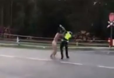 [Video 18+] Atak nagiego mężczyzny na policjanta podczas festiwalu Owsiaka