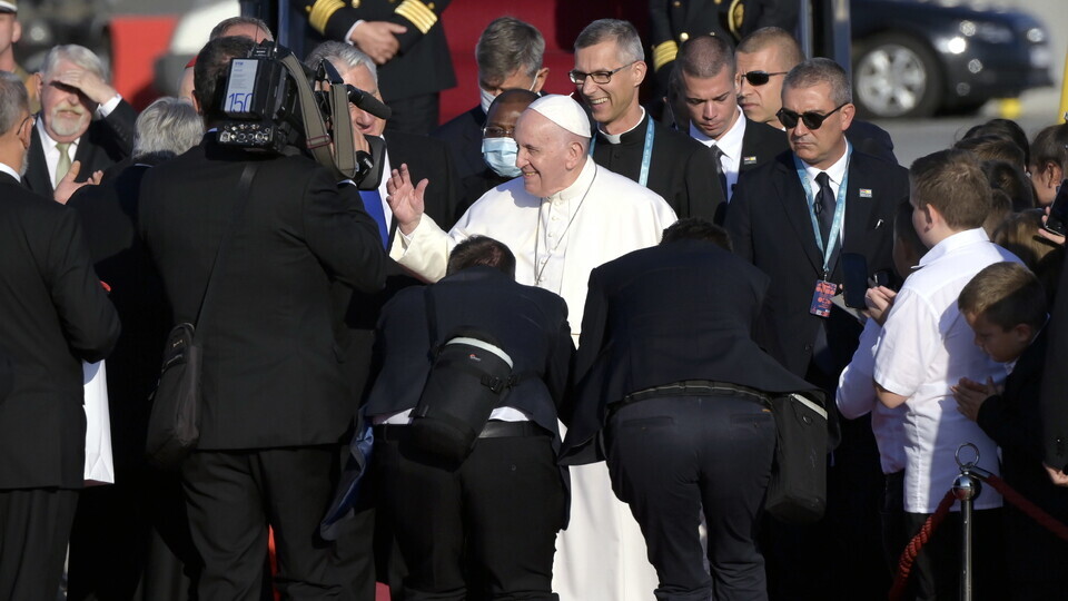 Podczas lotu do stolicy Węgier papież tradycyjnie przyszedł do towarzyszących mu dziennikarzy, by przywitać się z nimi.