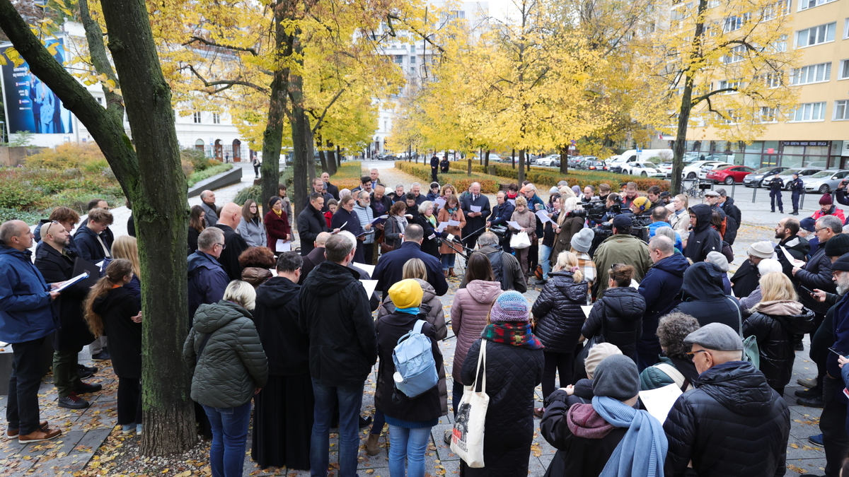 - Spotkamy się na placu Grzybowskim, żeby razem, każdy w swojej tradycji, wołać do jedynego Boga o pokój: słowami modlitwy apelować do wszystkich o uznanie prawa każdej społeczności do istnienia w bezpiecznych granicach, do życia w świecie, w którym nie ma ucisku ani wojen - mówili na początku spotkania s. Katarzyna Kowalska i prof. Stanisław Krajewski, współprzewodniczący Polskiej Rady Chrześcijan i Żydów.