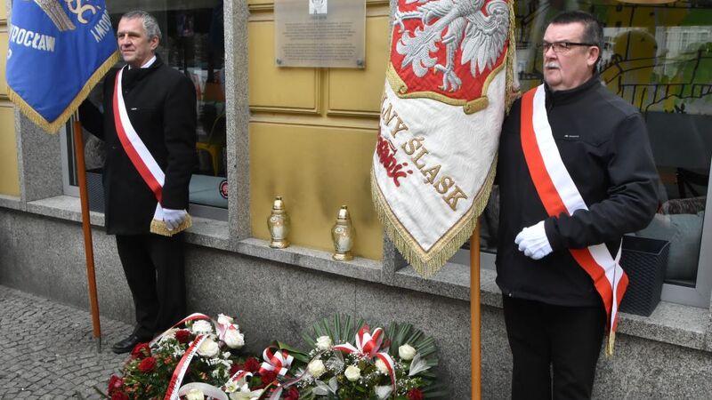 Wieńce i kwiaty pod tablicą Aleksandry Natalii-Świat złożyli Przewodniczący Zarządu Regionu Kazimierz Kimso wraz z sekretarzem ZR Grzegorzem Makulem, przy asyście sztandaru dolnośląskiej Solidarności.