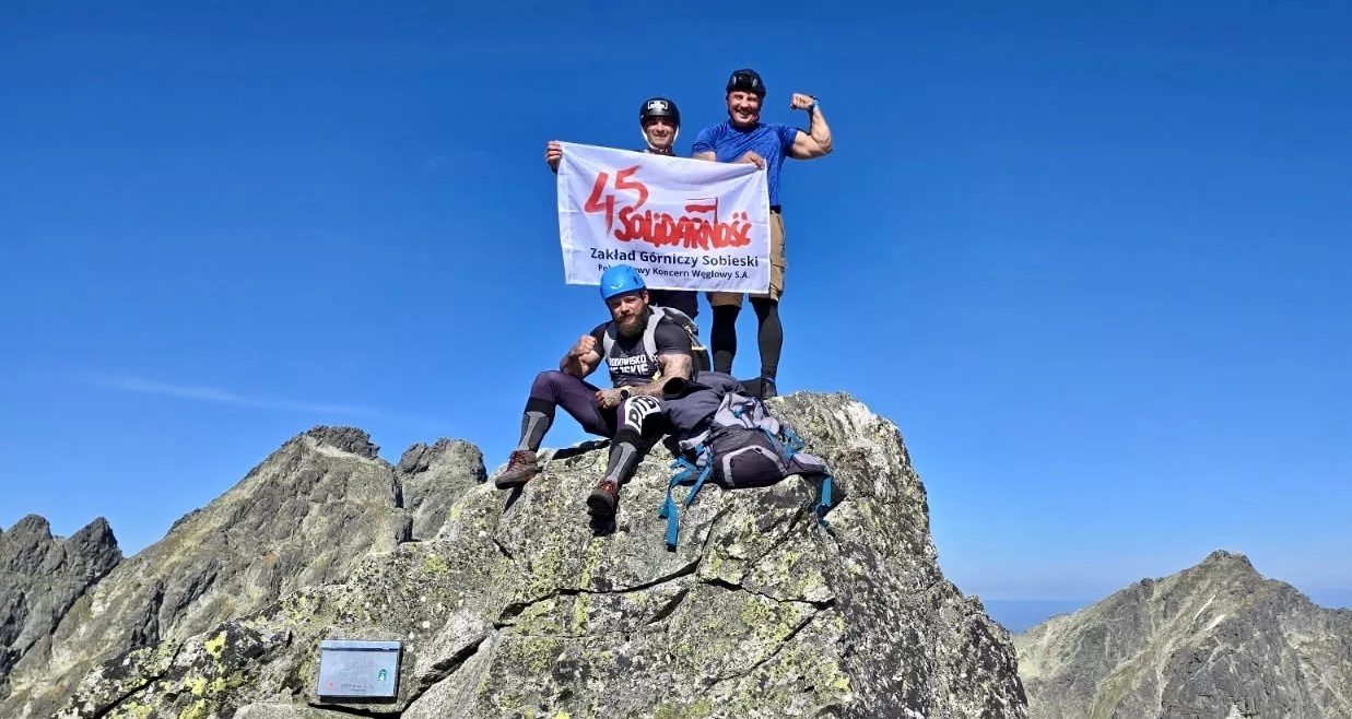 Flaga 45-lecia Solidarności dotarła na jeden z najwyższych szczytów Tatr, Ganek. Wnieśli ją tam górnicy z ZG Sobieski