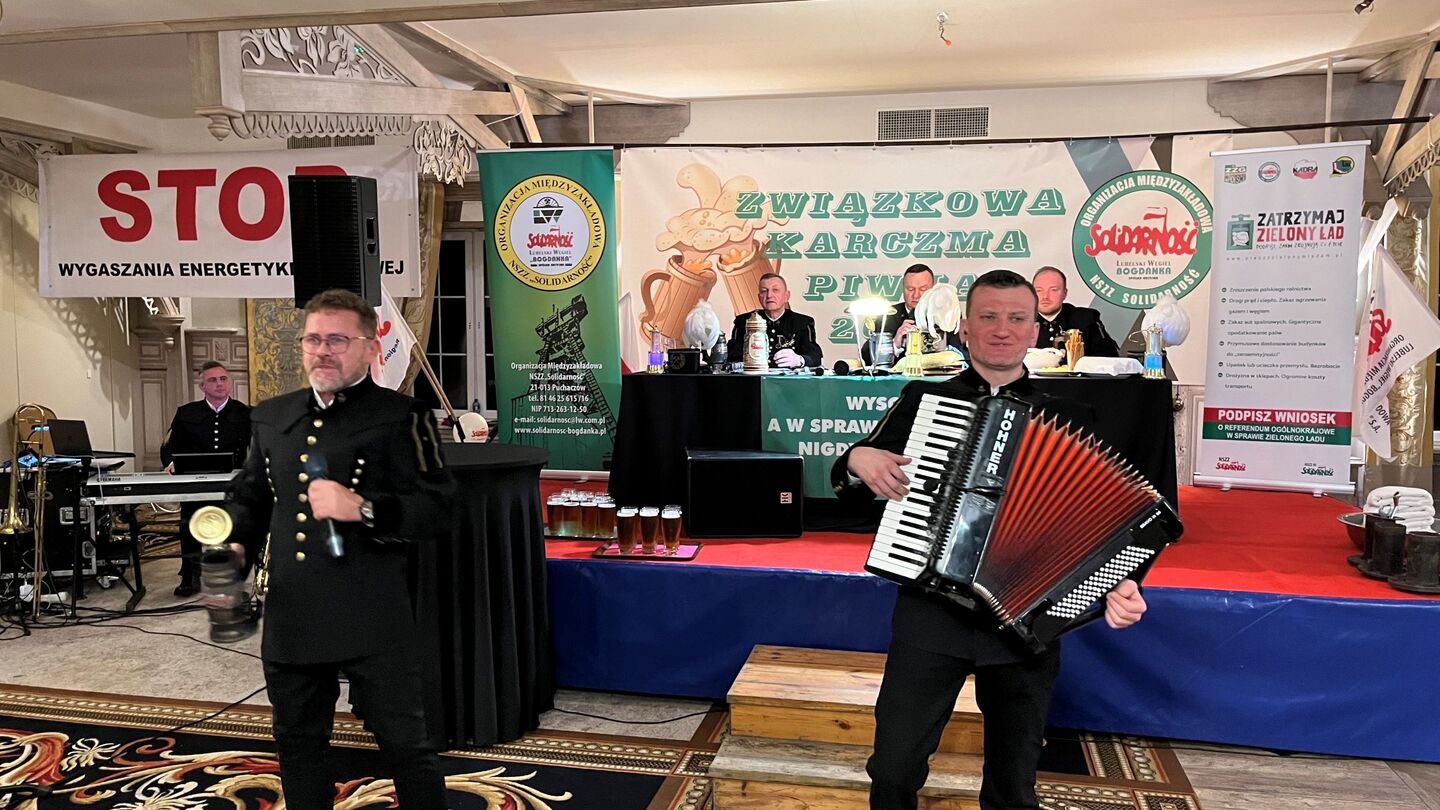 Bez “Lubelskiego Węgla" trudno wyobrazić sobie lubelszczyznę, bo z tysiącami miejsc pracy w kopalni są powiązane dziesiątki tysięcy innych miejsc pracy. Przymiarki do wygaszenia dobrze prosperującego zakładu górniczego wydają się irracjonalne, ale pracownicy Bogdanki po ruchach w branży energetycznej widzą, że to staje się faktem. Dlatego Karczmie Piwnej towarzyszył wielki transparent “STOP wygaszaniu energetyki węglowej" oraz “Zatrzymaj Zielony Ład". Sami górnicy nie raz podczas karczmy głośno skandowali, co myślą o Zielonym Ładzie. My, jako dziennikarze “Tygodnika Solidarność, jadąc przez Lubelszczyznę, kilkukrotnie widzieliśmy transparenty wzywające do zaniechania wygaszania Bogdanki. Zlikwidowanie tak dużego zakładu pracy byłoby tragedią dla całego regionu, ale też dla kraju w ogóle. Już niedługo na łamach “Tygodnika Solidarność" będzie można przeczytać szeroki materiał o Lubelskim Węglu i jego perspektywach.