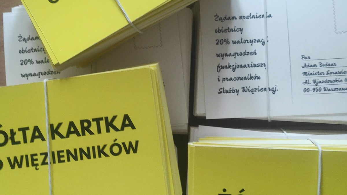 25 kwietnia ruszyła akcja "żółtej kartki od więzienników dla ministra sprawiedliwości", w związku z brakiem realizacji 20% waloryzacji wynagrodzeń funkcjonariuszy i pracowników. Funkcjonariusze i pracownicy z całej Polski zaczęli wysyłać kartki pocztowe w żółtym kolorze w ilości 5 tys. sztuk.