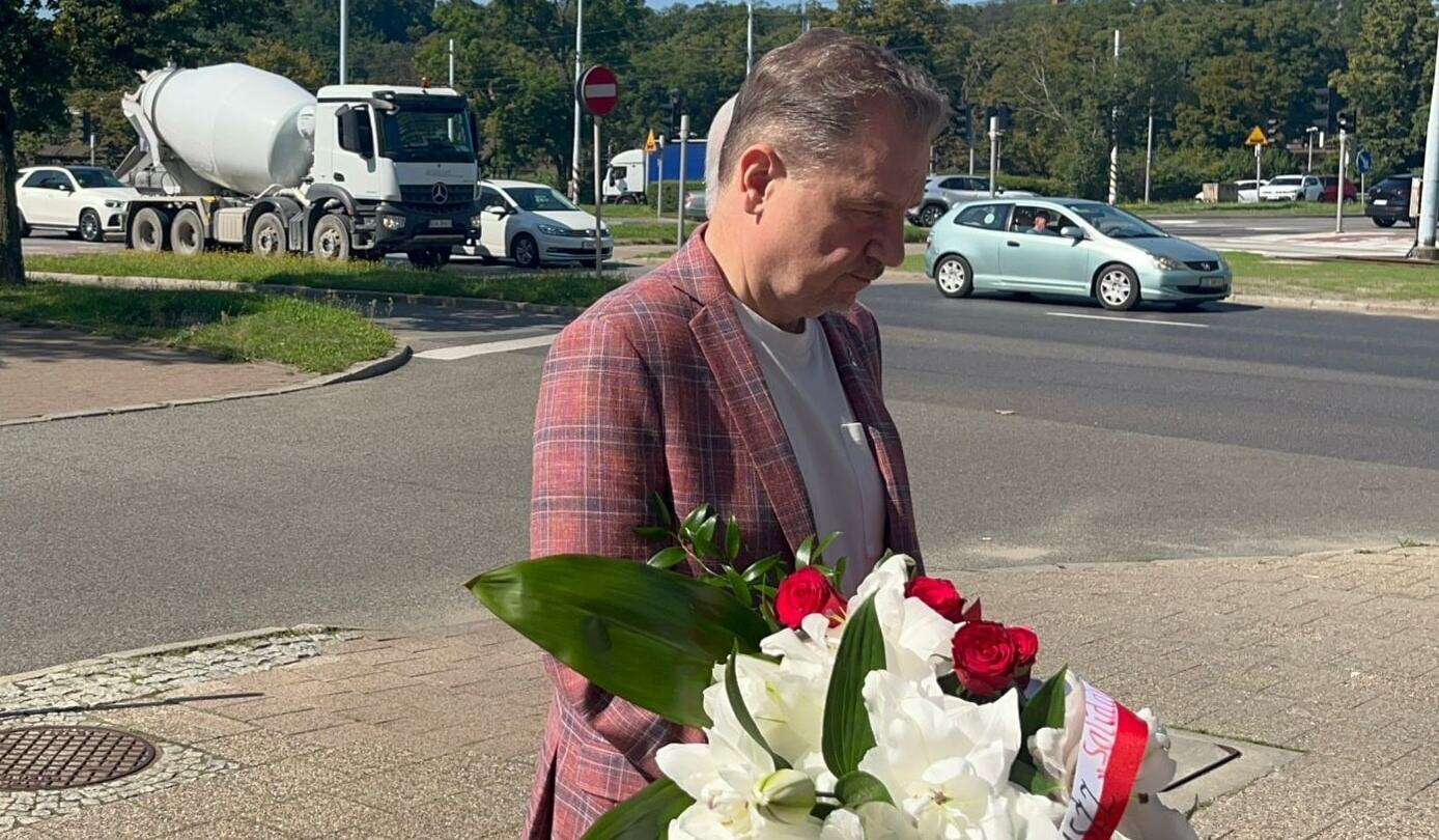 Przewodniczący Komisji Krajowej NSZZ "Solidarność" Piotr Duda i przewodniczący Zarządu Regionu Gdańskiego NSZZ "Solidarność" Krzysztof Dośla złożyli kwiaty przed tablicą upamiętniającą legendę Solidarności - Annę Walentynowicz. Tablica została w 2024 roku umieszczona z inicjatywy "S" i gdańskiego oddziału IPN na budynku Komisji Krajowej NSZZ "Solidarność".