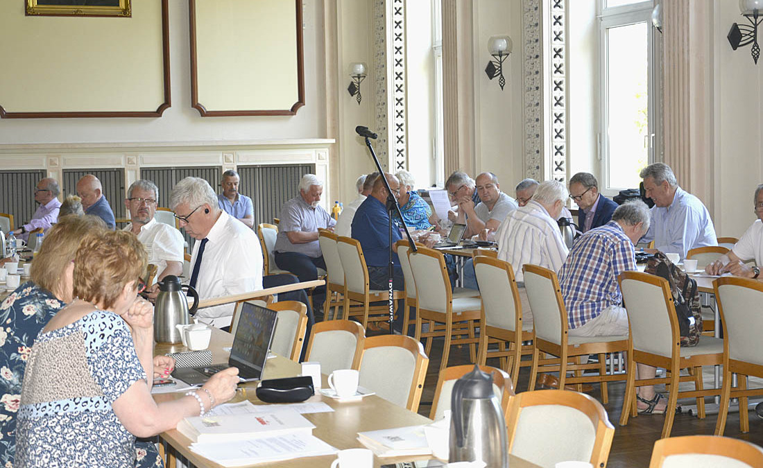 Kolejnym punktem posiedzenia ZRG było podsumowanie działalności punktu recepcyjnego dla uchodźców z Ukrainy. Mieścił się on w dwóch salach konferencyjnych Zarządu Regionu i funkcjonował od 11 marca do 10 czerwca br. Przewinęło się przez niego ponad 1200 uchodźców, którym pomogło w sumie 145 wolontariuszy, pełniących ośmiogodzinne dyżury. W zbiórce na rzecz uchodźców zebrano ponad 100 tys. zł. W czasie Zarządu Regionu wręczono pamiątkowe dyplomy i odznaki członkom ZRG, którzy pełnili dyżury w punkcie recepcyjnym. Pozostali wolontariusze także otrzymają podobne podziękowania.