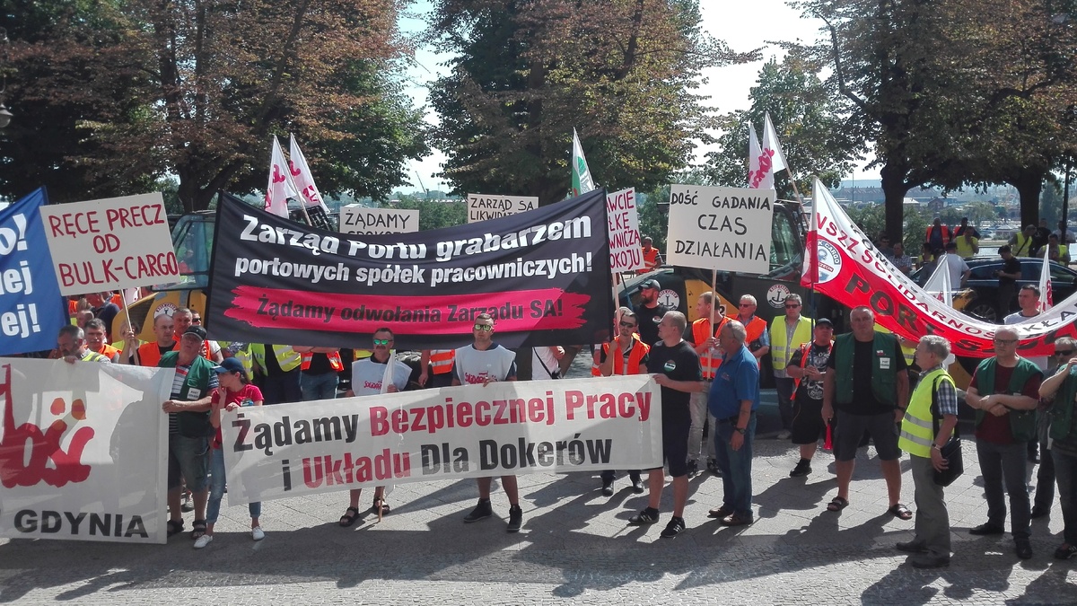 W Zarządzie Portu i pod Urzędem Wojewódzkim protestowali 23 sierpnia związkowcy ze spółek portowych w Szczecinie.