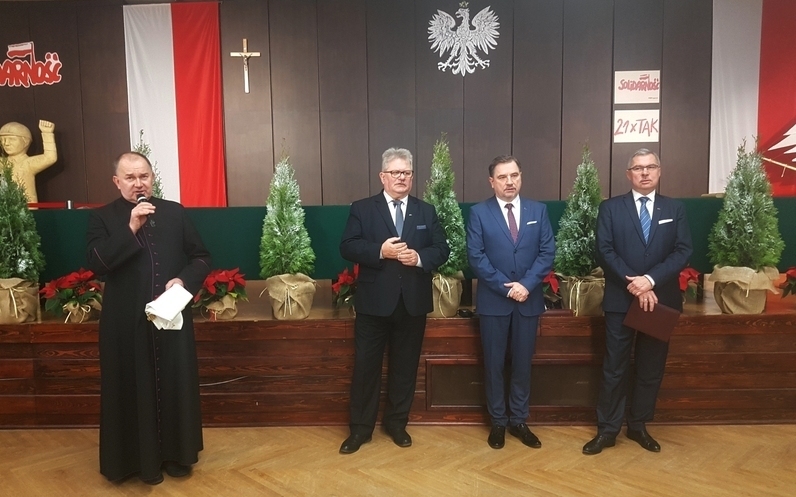 Tak jak powiedział Krzysztof: uśmiechnijmy się, w tym pięknym okresie adwentu, oczekiwania na najpiękniejsze święta, święta rodzinne. To dla nas wyjątkowy czas. Zgodnie z naszą piękną tradycją spotykamy się w tym historycznym miejscu, jakim jest Sala BHP i będziemy dzielić się chlebem bożym, jakim jest opłatek. Ale wracając do 1980 roku, do sierpnia, tutaj robotnicy także dzielili się chlebem. Nie wszystkim rodziny przynosiły pod bramę kanapki. Byli tacy, którzy na strajku byli sami. Dlatego tutaj, na tej sali, jeden z drugim dzielił się chlebem. I to jest dla nas takie wymowne, że prawie po 40 latach my w tym miejscu się spotykamy. Chciałbym w swoim imieniu, prezydium Komisji Krajowej, życzyć wam zdrowych, pogodnych świąt. Nadchodzący rok będzie dla nas szczególny, to rok jubileuszu 40-lecia powstania NSZZ "Solidarność". Dla nas będzie to trudny rok. Nie możemy zapominać o naszych członkach związku i pracownikach. Wczoraj na Komisji Krajowej przyjęliśmy 3 stanowiska. O tablicach Porozumień Sierpniowych, których oryginały powinny być tu, a nie w tym wyrobie czekoladopodobnym, jakim jest Europejskie Centrum BEZ Solidarności. O ustawie, która ma przywrócić SB-kom ich wysokie emerytury, a także stanowisko dot. przyszłości naszej gospodarki, jakim jest neutralność klimatyczna. Póki co w nas dzisiaj płynie energia, i to ta zielona, dlatego podzielmy się nią wzajemnie i wszystkiego dobrego dla was na święta i na nowy rok