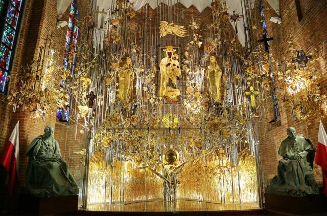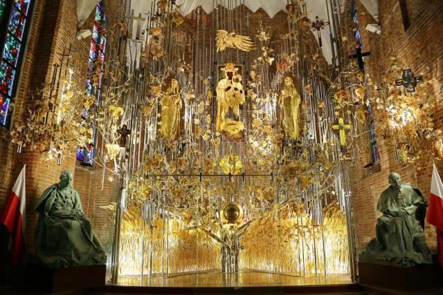Replika Krzyża Wolności i Solidarności zawiśnie w Bursztynowym Ołtarzu bazyliki św. Brygidy w Gdańsku